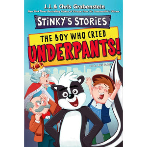 It’s story time at Hickleberry Elementary with Stinky the stuffed skunk! You’ve probably heard of the boy who cried wolf, but do you know what happened after no one believed him? Well, according to Stinky, the boy moves away to the Big City, where he gets a job crying wolf for The William D. Wolfe Company, Makers Of All Sorts Of Fine And Fancy Stuff. But when the boy gets bored again, he decides to use his talents to cry UNDERPANTS instead. When the queen hears his cries, she takes great offense—how dare he???—and suddenly, the Big City is sent into total chaos! Will the boy be able to save the day before it all gets too smelly? This first stinky story is the first-ever chapter book series from beloved New York Times bestselling authors Chris and J. J. Grabenstein. Filled with page after page of hilarious illustrations by acclaimed artist Alex Patrick. Stinky's Stories is the perfect series for young, reluctant, and emergent readers—or any kid who just loves to laugh.